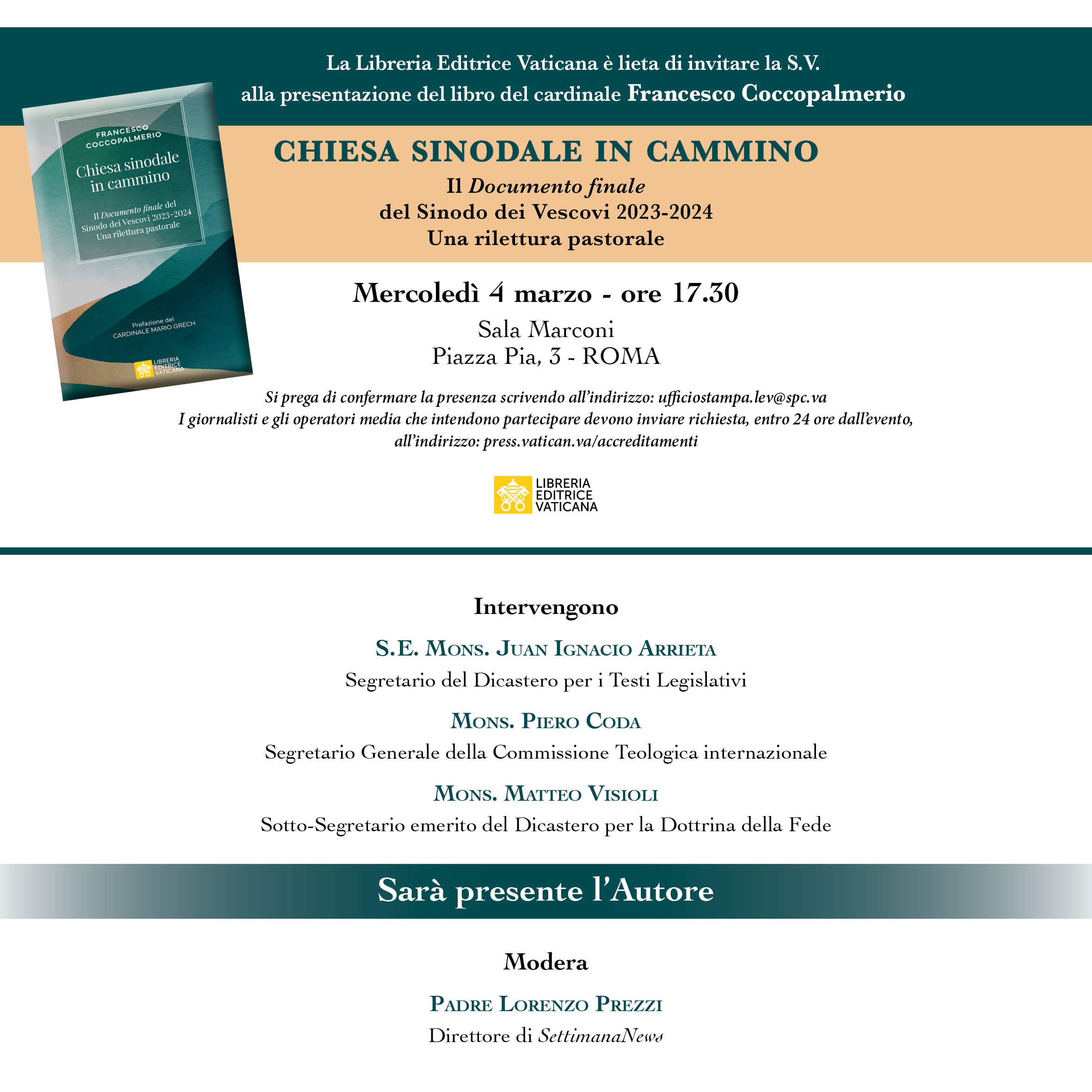 Presentation of the book Chiesa sinodale in cammino by Cardinal Francesco Coccopalmerio.